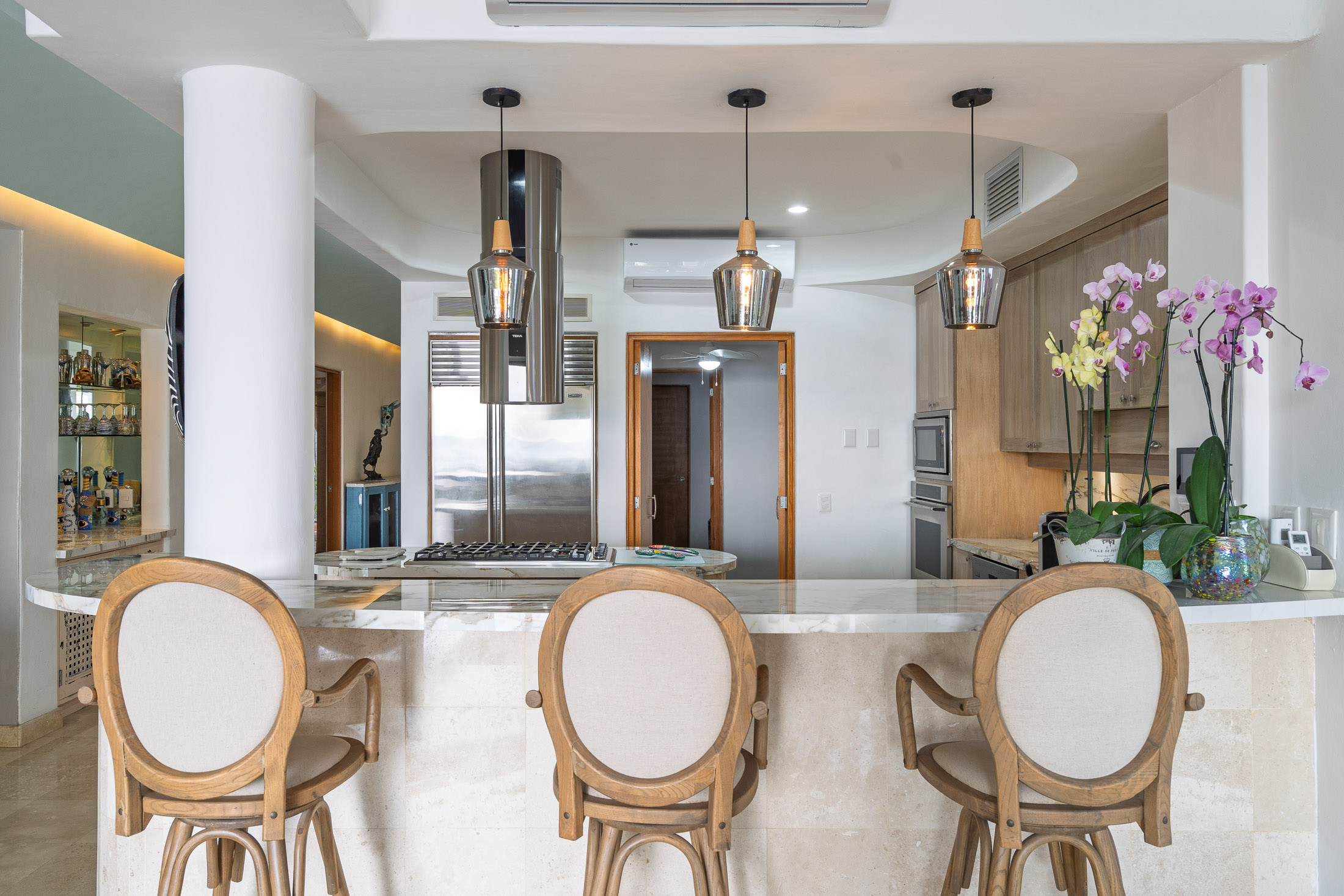 Tucked between La Cruz and Punta Mita, this magnificent home is “close enough, but far enough away” situated along the quiet coastal road and neighboring low density, high value condo complexes and resorts.