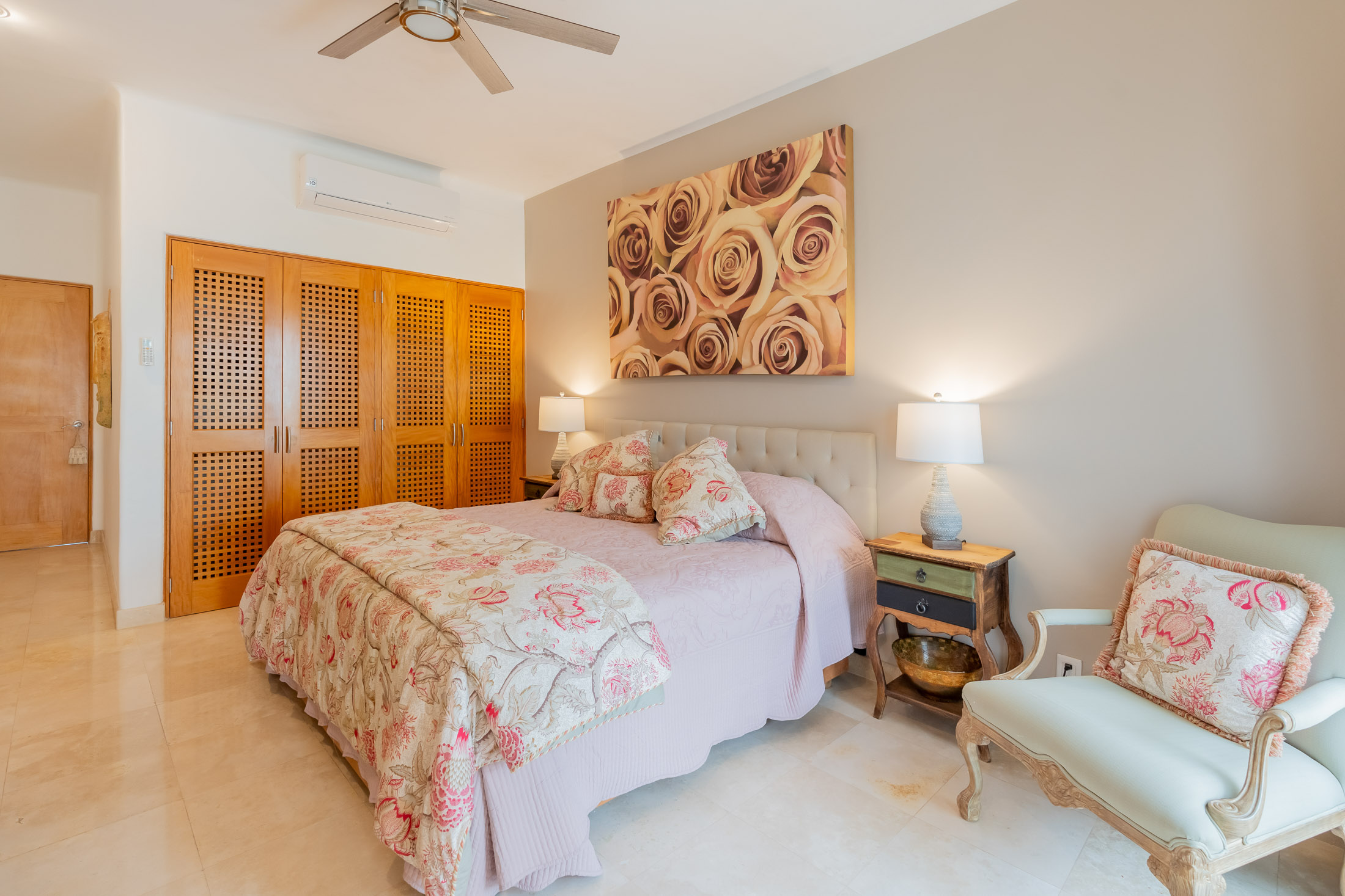 • BEDROOM #5: Separate Studio Suite Apartment, spacious bedroom, balcony overlooking courtyard & fountain.